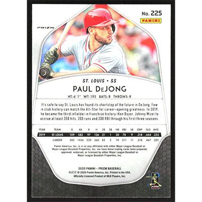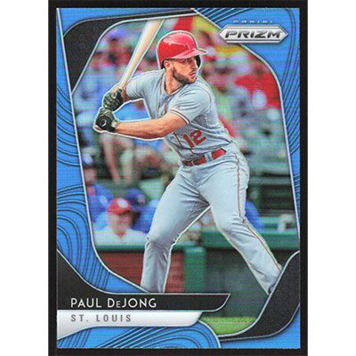 This is a 2020 Panini Prizm Carolina Blue Paul DeJong baseball card. The card is #225 and pictures show condition.