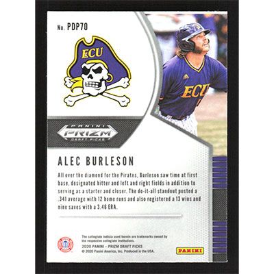 This is a 2020 Panini Prizm Draft Picks Alec Burleson baseball card. The card is #PDP70 and pictures show condition.