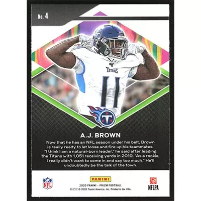 This is a 2020 Panini Prizm Hype A.J. Brown football card. The card is #4 and pictures show condition.