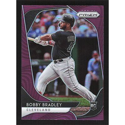 This is a 2020 Panini Prizm Purple Bobby Bradley baseball card. The card is #39 and pictures show condition. Team(s): Cleveland Indians Rookie Card (RC)