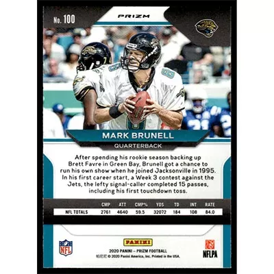 This is a 2020 Panini Prizm Red Ice Mark Brunell football card. The card is #100 and pictures show condition.