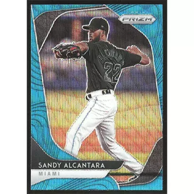 This is a 2020 Panini Prizm Teal Wave Sandy Alcantara baseball card. The card is #133 and pictures show condition.