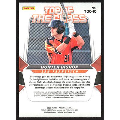 This is a 2020 Panini Prizm Top of The Class Hunter Bishop baseball card. The card is #TOC-10 and pictures show condition. Team(s): San Francisco Giants