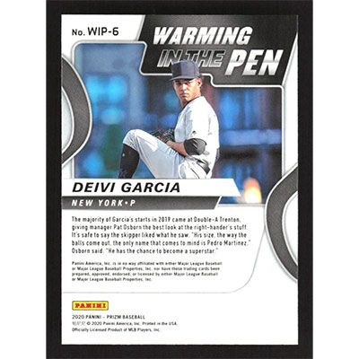 This is a 2020 Panini Prizm Warming in the Pen Deivi Garcia baseball card. The card is #WIP-6 and pictures show condition.