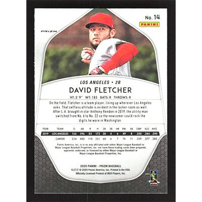 This is a 2020 Panini Prizm White Wave David Fletcher baseball card. The card is #14 and pictures show condition.