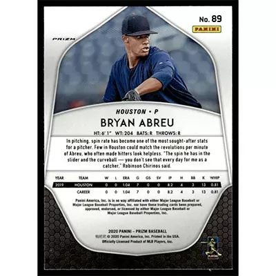 This is a 2020 Panini Prizm White Wave Bryan Abreu baseball card. The card is #89 and pictures show condition. Team(s): Houston Astros Rookie Card (RC)