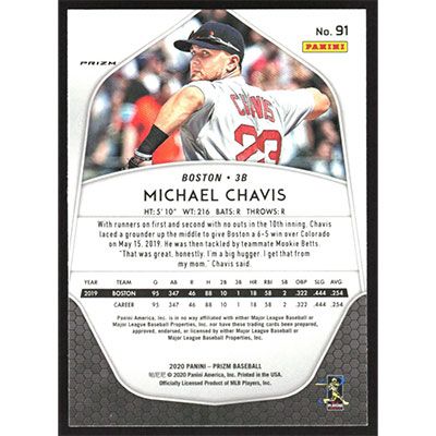 This is a 2020 Panini Prizm White Wave Michael Chavis baseball card. The card is #91 and pictures show condition.