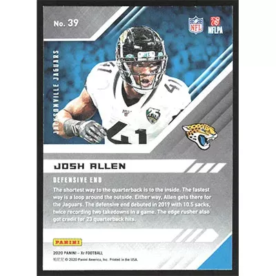 This is a 2020 Panini XR Josh Allen football card. The card is #39 and pictures show condition.