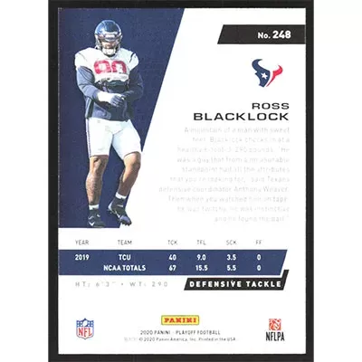 This is a 2020 Playoff Ross Blacklock football card. The card is #248 and pictures show condition.
