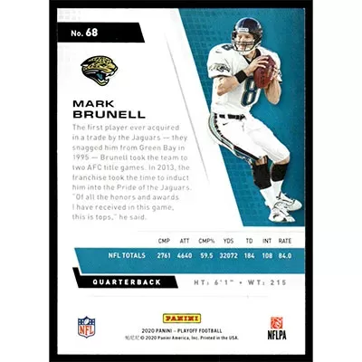 This is a 2020 Playoff Mark Brunell football card. The card is #68 and pictures show condition.