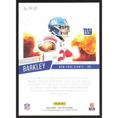 This is a 2020 Prestige Power House Saquon Barkley football card. The card is #PH-SB and pictures show condition.