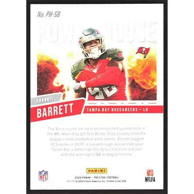 This is a 2020 Prestige Power House Shaquil Barrett football card. The card is #PH-SB and pictures show condition.
