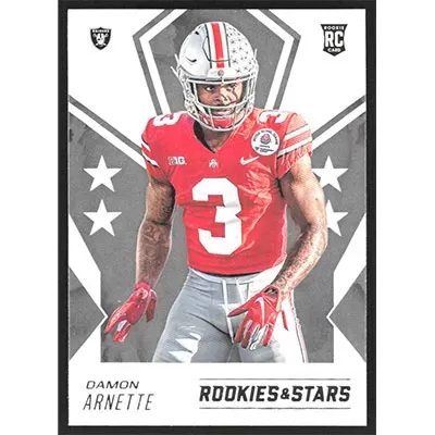 This is a 2020 Rookies & Stars Damon Arnette football card. The card is #185 and pictures show condition.