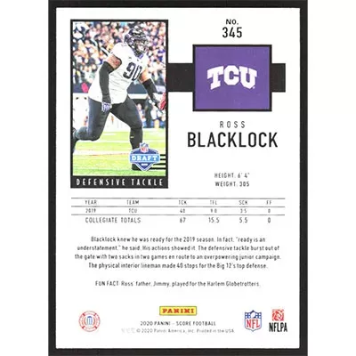 This is a 2020 Score Ross Blacklock football card. The card is #345 and pictures show condition.