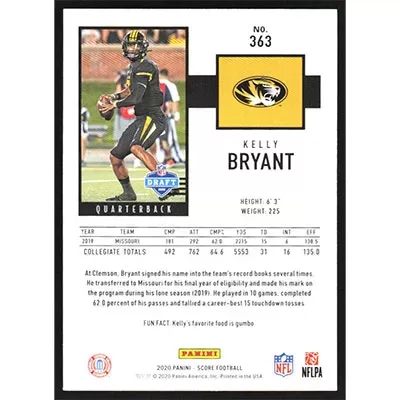 This is a 2020 Score Kelly Bryant football card. The card is #363 and pictures show condition.