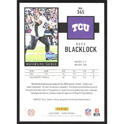 This is a 2020 Score Red Ross Blacklock football card. The card is #345 and pictures show condition.