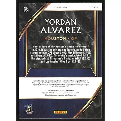 This is a 2020 Select Prizms Scope Yordan Alvarez Premier baseball card. The card is #154 and pictures show condition. Team(s): Houston Astros Rookie Card (RC)