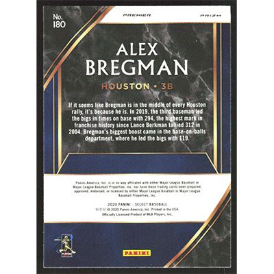 This is a 2020 Select Scope Alex Bregman Premier baseball card. The card is #180 and pictures show condition.