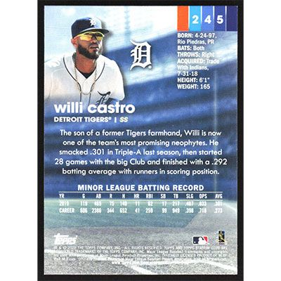 This is a 2020 Stadium Club Willi Castro baseball card. The card is #245 and pictures show condition.