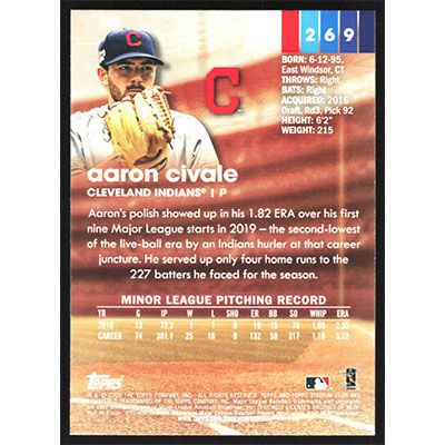 This is a 2020 Stadium Club Aaron Civale baseball card. The card is #269 and pictures show condition.