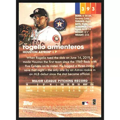 This is a 2020 Stadium Club Chrome Rogelio Armenteros baseball card. The card is #393 and pictures show condition. Team(s): Houston Astros Rookie Card (RC)