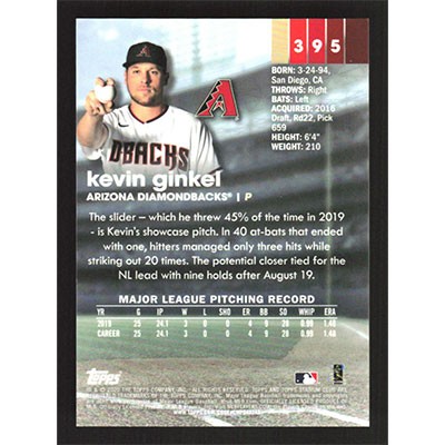 This is a 2020 Stadium Club Chrome X-Fractors Kevin Ginkel baseball card. The card is #395 and pictures show condition. Team(s): Arizona Diamondbacks Rookie Card (RC)
