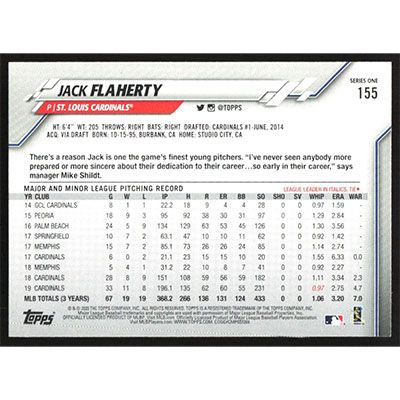 This is a 2020 Topps Jack Flaherty baseball card. The card is #155 and pictures show condition.