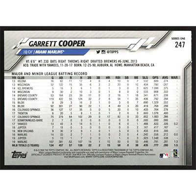 This is a 2020 Topps Garrett Cooper baseball card. The card is #247 and pictures show condition.