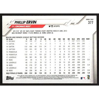 This is a 2020 Topps Phillip Ervin baseball card. The card is #377 and pictures show condition.