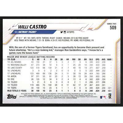 This is a 2020 Topps Willi Castro baseball card. The card is #509 and pictures show condition.