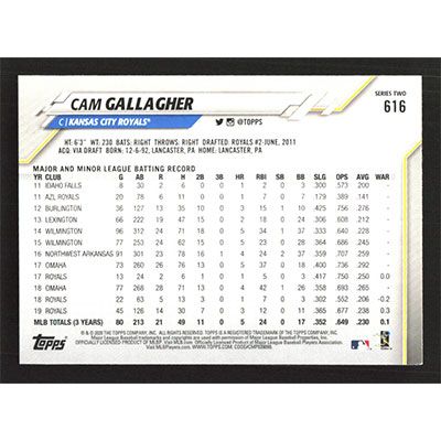 This is a 2020 Topps Cam Gallagher baseball card. The card is #616 and pictures show condition.