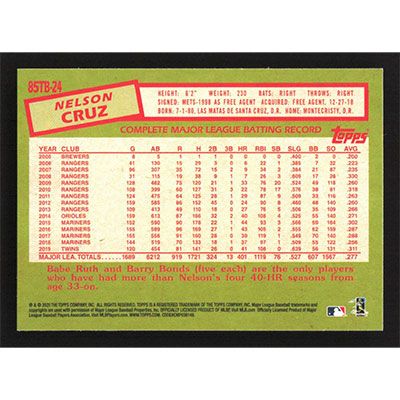 This is a 2020 Topps '85 Series 2 Nelson Cruz baseball card. The card is #85TB-24 and pictures show condition.