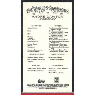 This is a 2020 Topps Allen & Ginter Mini Andre Dawson baseball card. The card is #64 and pictures show condition.