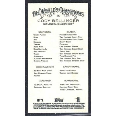 This is a 2020 Topps Allen & Ginter Mini Cody Bellinger baseball card. The card is #65 and pictures show condition.