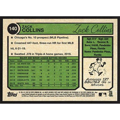 This is a 2020 Topps Archives Zack Collins baseball card. The card is #140 and pictures show condition.