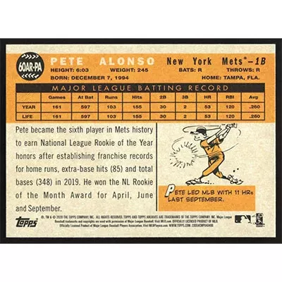This is a 2020 Topps Archives '60 All-Star Rookies Pete Alonso baseball card. The card is #60AR-PA and pictures show condition.
