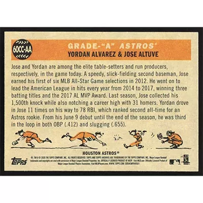 This is a 2020 Topps Archives '60 Combo Cards Yordan Alvarez and Jose Altuve baseball card. The card is #60CC-AA and pictures show condition. Team(s): Houston Astros