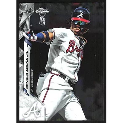 This is a 2020 Topps Chrome Ben Baller Ronald Acuña Jr. baseball card. The card is #112 and pictures show condition.