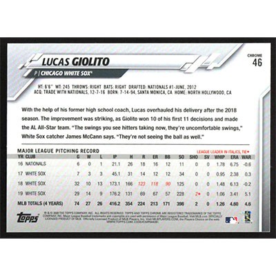 This is a 2020 Topps Chrome Ben Baller Lucas Giolito baseball card. The card is #46 and pictures show condition.