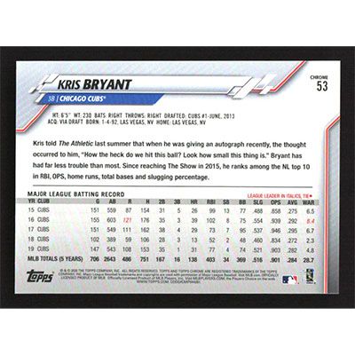 This is a 2020 Topps Chrome Ben Baller Kris Bryant baseball card. The card is #53 and pictures show condition.