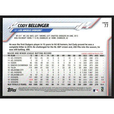 This is a 2020 Topps Chrome Ben Baller Cody Bellinger baseball card. The card is #77 and pictures show condition.