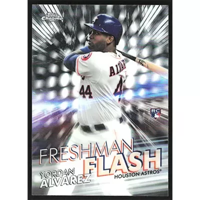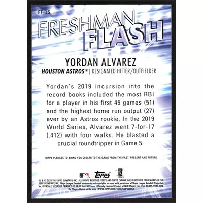 This is a 2020 Topps Chrome Freshman Flash Yordan Alvarez baseball card. The card is #FF-15 and pictures show condition. Team(s): Houston Astros Rookie Card (RC)