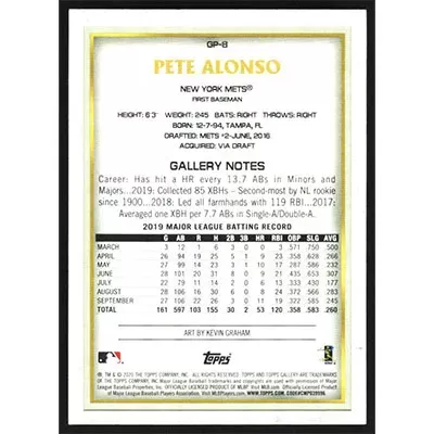 This is a 2020 Topps Chrome Gallery National Baseball Card Day Preview Pete Alonso baseball card. The card is #GP-8 and pictures show condition. Team(s): New York Mets