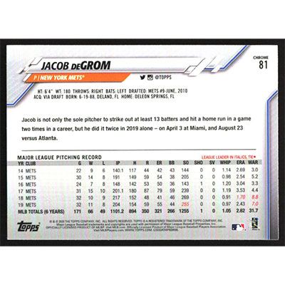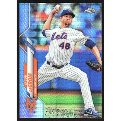 This is a 2020 Topps Chrome Prism Refractors Jacob deGrom baseball card. The card is #81 and pictures show condition.