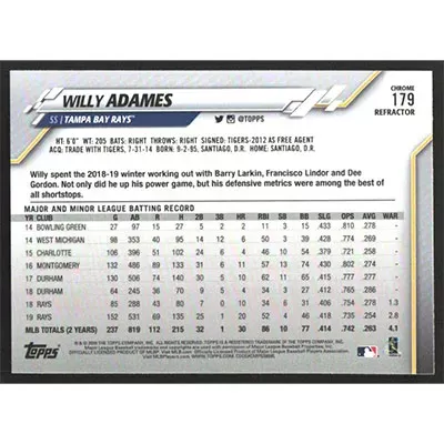 This is a 2020 Topps Chrome Sepia Refractors Willy Adames baseball card. The card is #179 and pictures show condition.