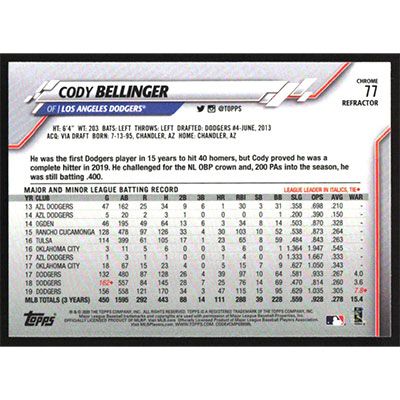 This is a 2020 Topps Chrome Sepia Refractors Cody Bellinger baseball card. The card is #77 and pictures show condition.