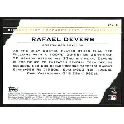 This is a 2020 Topps Chrome Update Decade's Next Rafael Devers baseball card. The card is #DNC-15 and pictures show condition.