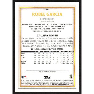This is a 2020 Topps Gallery Robel Garcia baseball card. The card is #76 and pictures show condition.