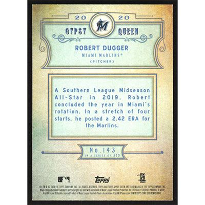 This is a 2020 Topps Gypsy Queen Robert Dugger baseball card. The card is #143 and pictures show condition.