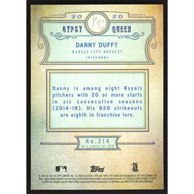 This is a 2020 Topps Gypsy Queen Green Danny Duffy baseball card. The card is #214 and pictures show condition.